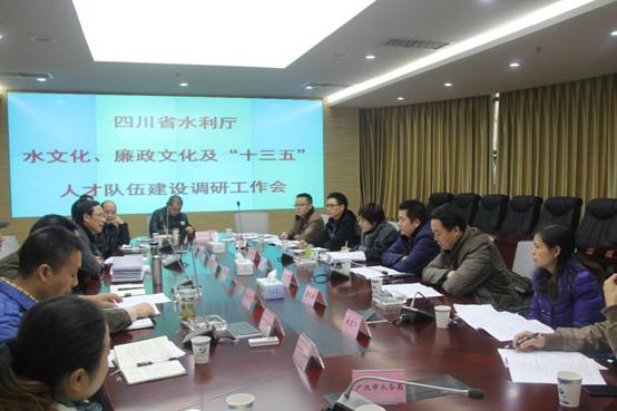 2015年12月10日,四川省水利人才“十三五”规划项目组和四川水利系统廉政文化建设项目组一行分别到都江堰管理局人民渠第二管理处和德阳水务局就人才队伍建设和廉政文化建设开展调研。水利厅人事处副处长牟春、四川水利职业技术学院党委副书记、纪委书记王宾及项目组其他人员参加。