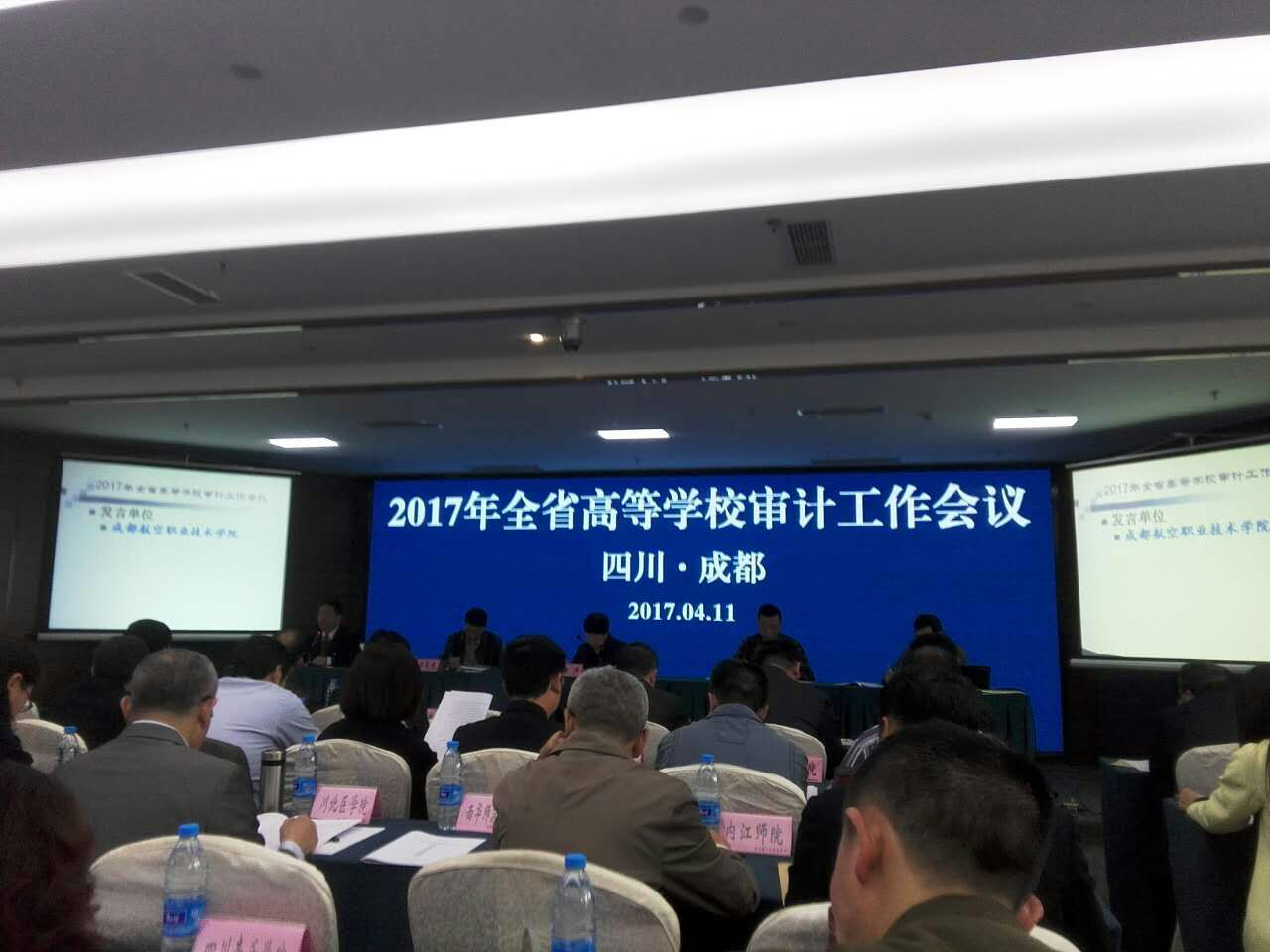 2017年4月11日四川省教育厅在成都召开2017年全省高等学校审计工作会议,会上总结、交流了2016年各高校内部审计工作经验,研究部署2017年教育审计工作。学院纪委副书记、监察处处长詹晓梅和内审人员陈碧辉参加了会议。