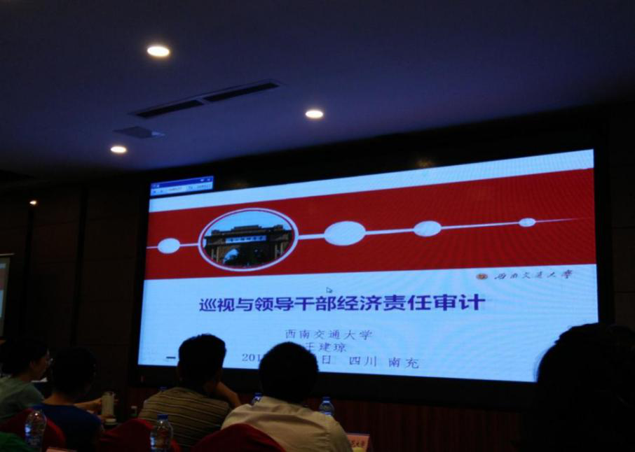 教育厅审计工作处处长陆卫江作了题为“党政主要领导干部经济责任审计对高校内部审计的启示”专题培训,从党政主要领导干部经济责任审计在高校的开展情况、对高校内部审计的启示两个方面进行了讲解。西南交通大学审计处处长王建琼教授作了“巡视与领导干部经济责任审计”专题培训,从《巡视工作条例》解读、教育系统巡视工作动态、经济责任审计对标巡视要求以及具体做法等四个方面进行了讲解。电子科技大学审计处处长王利作了题为“高校内部审计信息化建设”专题培训,从高校内部审计信息化建设应涉及的内容、高校内部审计信息化发展情况、高校内部审计信息化思考三个方面进行了讲解。四川大学审计处处长江文清教授作了题为“高校内部控制评审”专题培训,从内部控制基础理论、高校内部控制评价体系、高校内部控制评价实务、高校内部控制审计、高校内部控制评审的问题等五个方面进行了讲解。