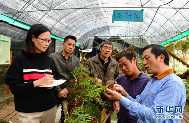 2018年11月3日,在福建省南武夷中药种植专业合作社,邵武市城郊镇纪检干部(左一)对结对帮扶精准扶贫对象官极贵(右二)进行走访。 新华社记者 魏培全 摄